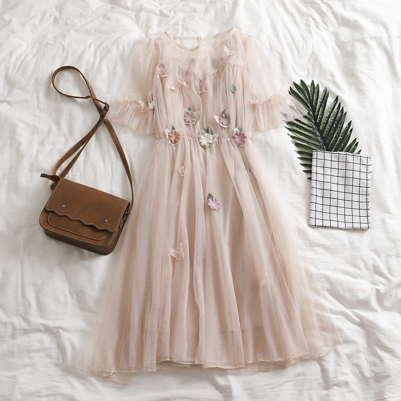 Best Price Summer Japanese Lolita Lace Dress Soft Kawaii Floral Vintage Flowers Women Sexy Clothing Sweet Plea