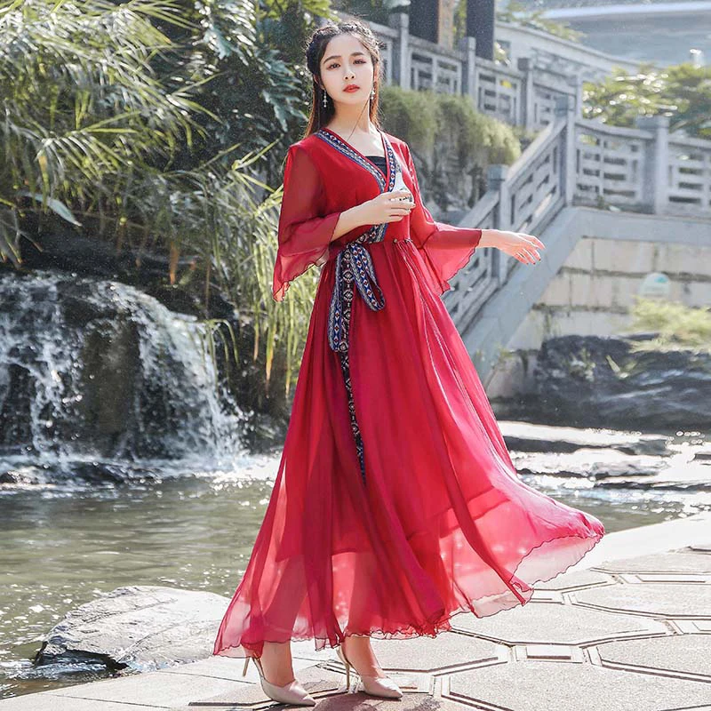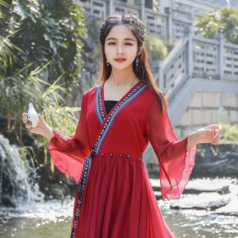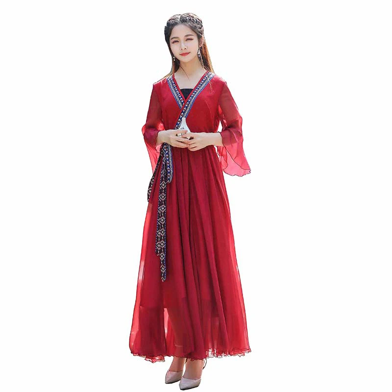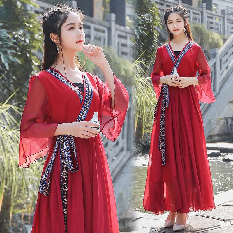 Super Deal Traditional Chinese Clothing Hanfu Dress Red Vintage Elegant Ancient Folk Dance Costumes Daily Tuni